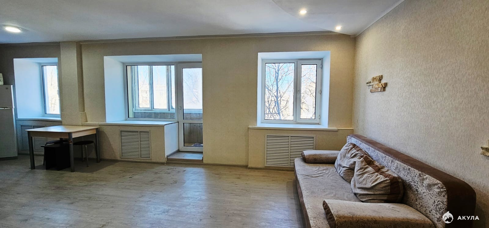 Балкон застеклен .В квартире остается вся мебель.